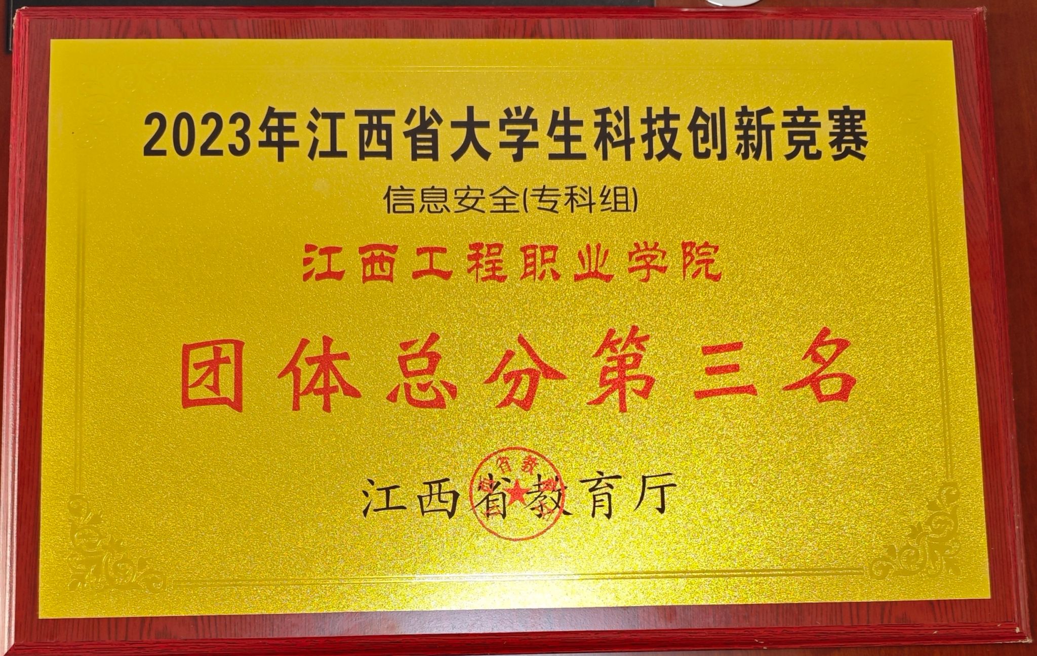 江西省大学生科技创新竞赛信息安全(专科组)团队总分第三名