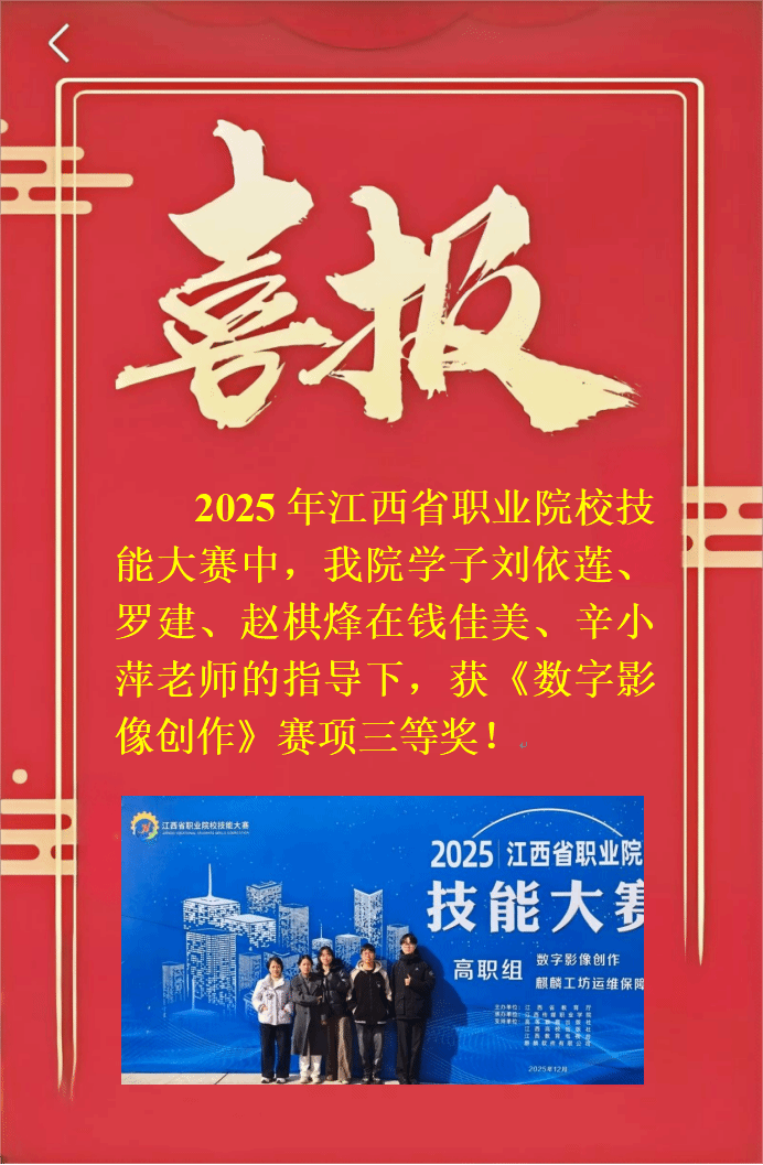 喜报!我院学子获江西省职业院校技能大赛数字影像创作赛项三等奖