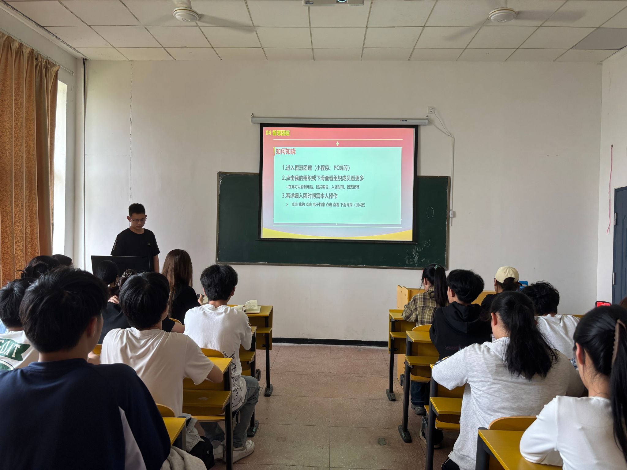 为进一步夯实班级团支部建设基础,提升团干部业务素养与履职能力,2026年4月9日,信息工程学院团总支于A813举办团干部业务能力专题培训。本次培训聚焦团支部工作手册规范书写、团员信息管理、智慧团建系统操作及入党流程与团干职责四大模块。