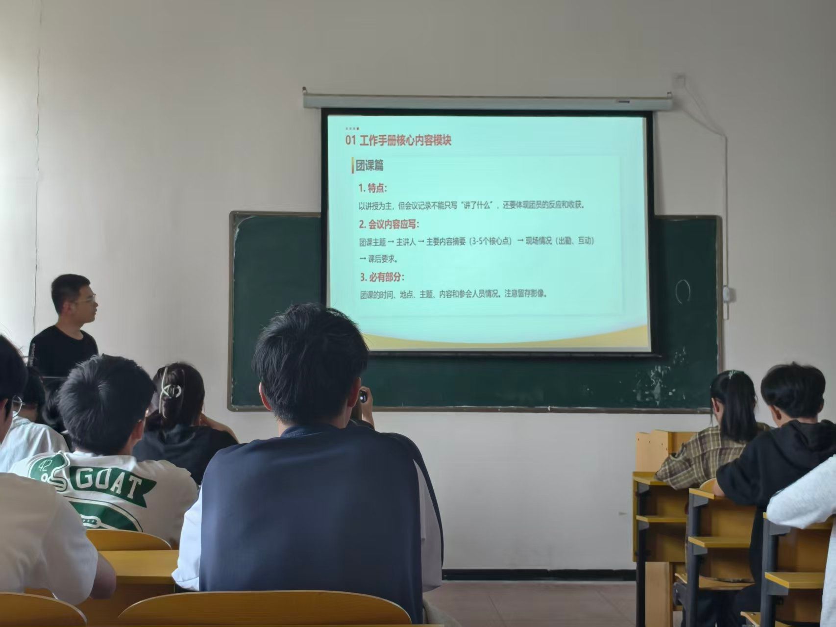 培训立足团务工作实际,突出规范性与实用性。在团支部工作手册规范环节,主讲人系统讲解手册记录要求,强调会议记录须紧扣议题、过程、分工三项核心要素,确保语言客观精练、数据准确翔实、责任明确到人,全面覆盖团课、主题活动等关键内容,同时团务记录须真实完整、归档及时。