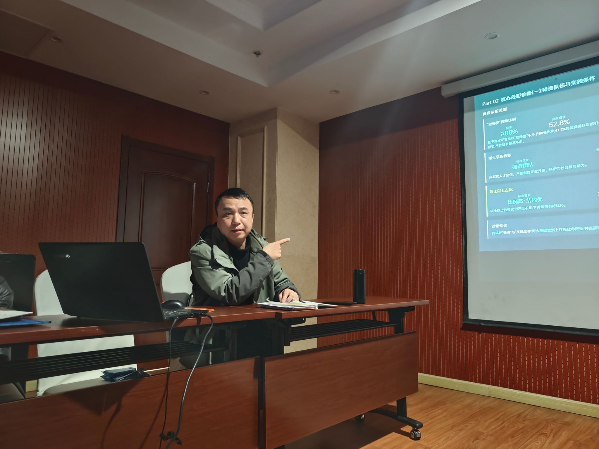 会上,周求生副院长首先剖析了学院发展面临的核心挑战,如师资结构需优化、实训设备待升级、服务体系待完善等。随后,他系统阐述了未来规划:着力推进三个实验室的布局建设,推动实现80%教师达到“双师型”标准;同时积极布局在线开放课程建设,并激励教师投身科研课题申报,以此全面夯实学院高质量发展的根基。